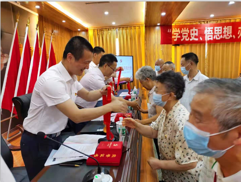 省經信廳黨史學習教育巡回指導五組領導和公司黨委領導還共同向老黨員頒發了“光榮在黨50年”紀念章,老黨員們戴上熠熠生輝的紀念章均難掩激動自豪的心情。宋志庚代表老黨員在發言中表示,在建黨100周年之際獲頒紀念章,既神圣又光榮,由衷感謝以習近平同志為核心的黨中央對老黨員的政治關懷和尊崇厚待。他表示會時刻牢記黨員身份,繼續為黨和我司事業發光發熱。大會還表彰了13名“兩優一先”個人和集體,姚蘇娟等8名同志被授予優秀共產黨員稱號,蘇明等4名同志被授予優秀黨務工作者稱號,第二黨支部被授予先進黨支部的稱號。